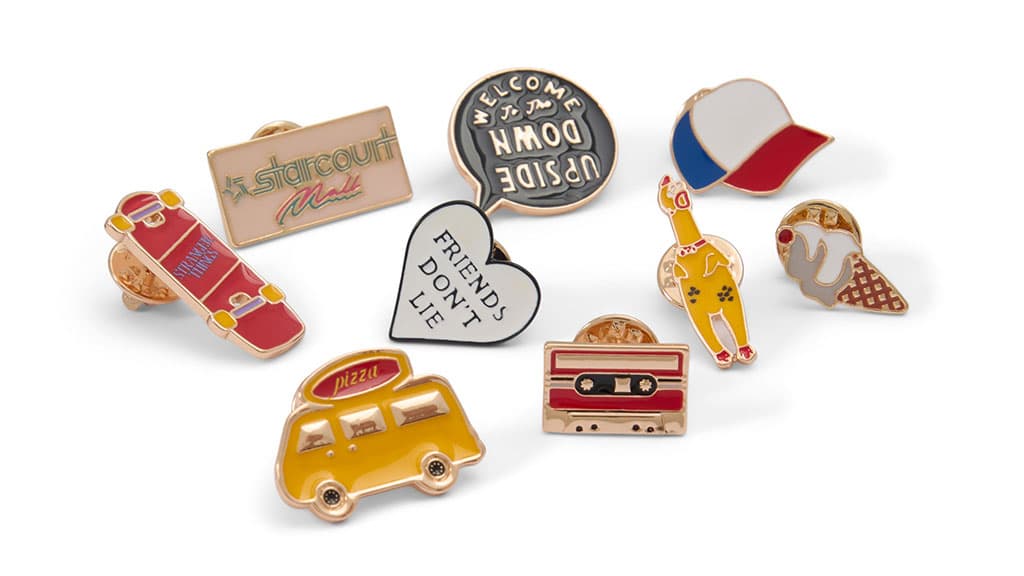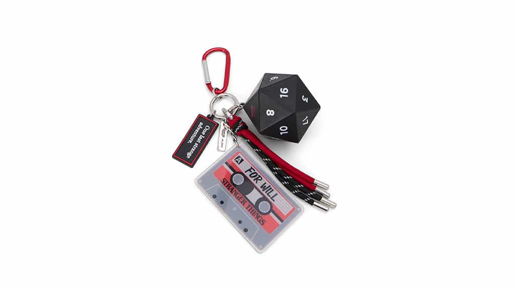 Alongside the shoes in the collection, Aldo is also launching a lineup of accessories, including the City of Hawkins handbag, which features patches like a demogorgon head, a cassette tape, and a waffle; a collection of enamel pins, including Dustin’s hat, a rubber chicken, and the sign for the Starcourt Mall; and the Mixtape Keychain, which features a squishy D20 and the “For Will” mixtape.