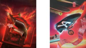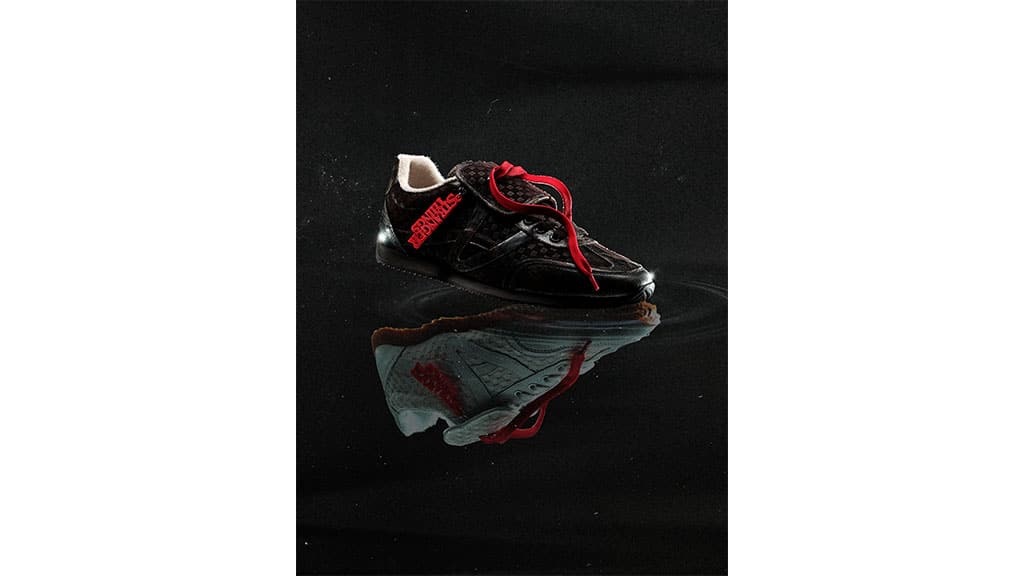 There are 11 pairs of shoes in the collection, five designs in men’s sizes and six designs in women’s. Some highlights from the men’s collection include the Roll 4 Your Life black loafers, which feature a “Hellfire Lives” seal on the tongue; the Hawkins High sneakers, which feature a white base and 3D green accents; and The Void white sneakers, which feature a white checkered pattern and red laces.