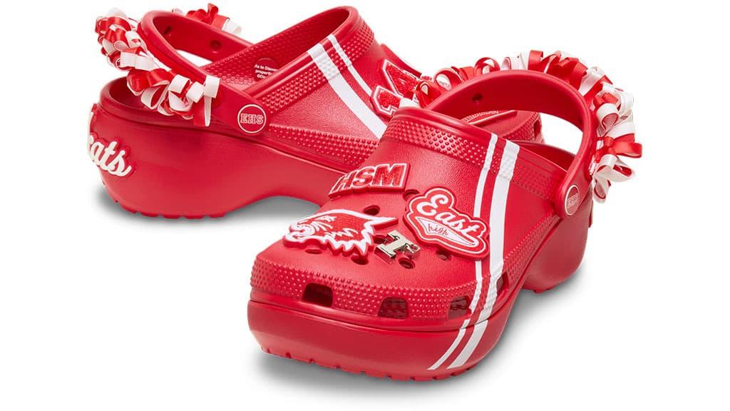 You can also rep East High in your daily wear with the High School Musical Crocs, which feature the school’s signature colors, pompom tassels along the back strap, and Jibbitz, including an East High pennant, a “T” for “Troy,” and a Wildcat. If that’s not enough Wildcats garb for you, you can also pick up an East High jersey and baseball cap.