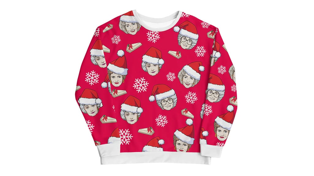 Your shortcut to holiday cheer is this festive sweatshirt, featuring the Golden Girls cast in Santa hats and slices of cheesecake.