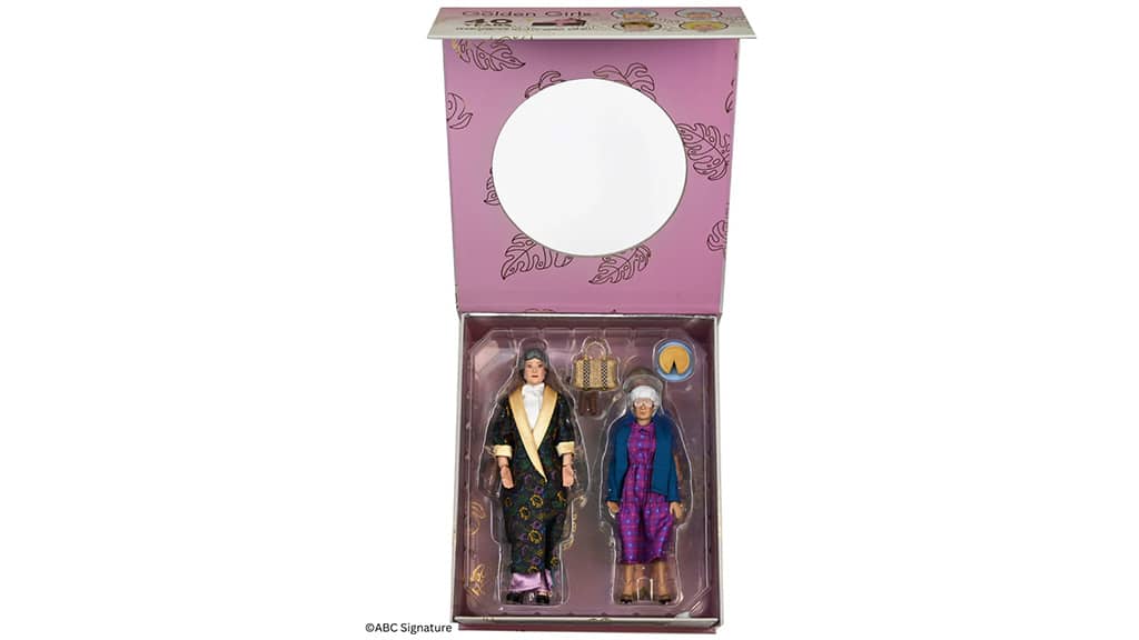 Picture it — these Golden Girls figures on your bookshelf! This limited-edition anniversary set celebrates the iconic sitcom with Little People versions of Blanche Devereaux, Dorothy Zbornak, Sophia Petrillo, and Rose Nylund, holding a slice of cheesecake.