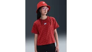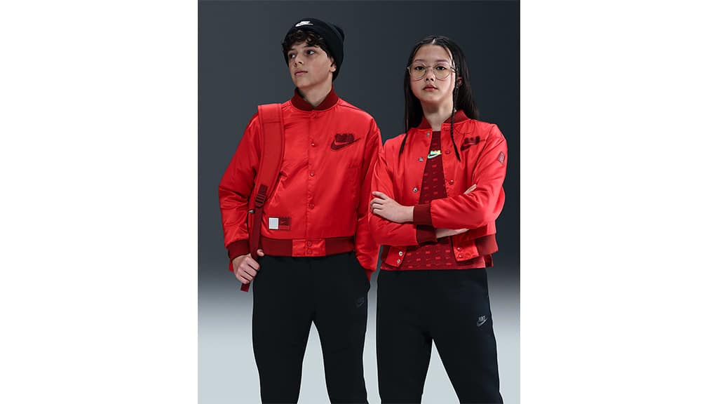 No matter your game, play in style with these new pieces from the Nike x LEGO Collection. The Big Kids’ Basketball Jacket is a red, oversized jacket that can complete your look with iridescent accents. Make a statement in the Girls’ Cropped T-Shirt, a red, roomy T-shirt featuring LEGO bricks and the Nike Swoosh. Designed for champions on and off the court, the Heritage Backpack carries it all — books, bricks, dunks, you name it!