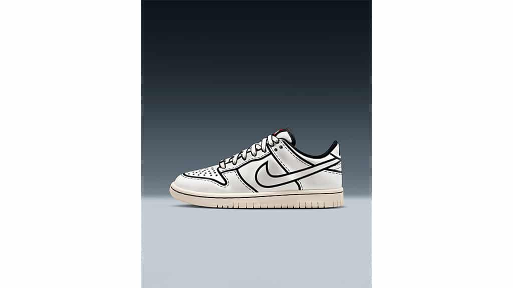 Players can up their sneaker game with the Big Kids’ Shoes from the Nike Dunk Low x LEGO Collection, black-and-white Dunks that come with four sets of laces for you to play with your style depending on your mood.