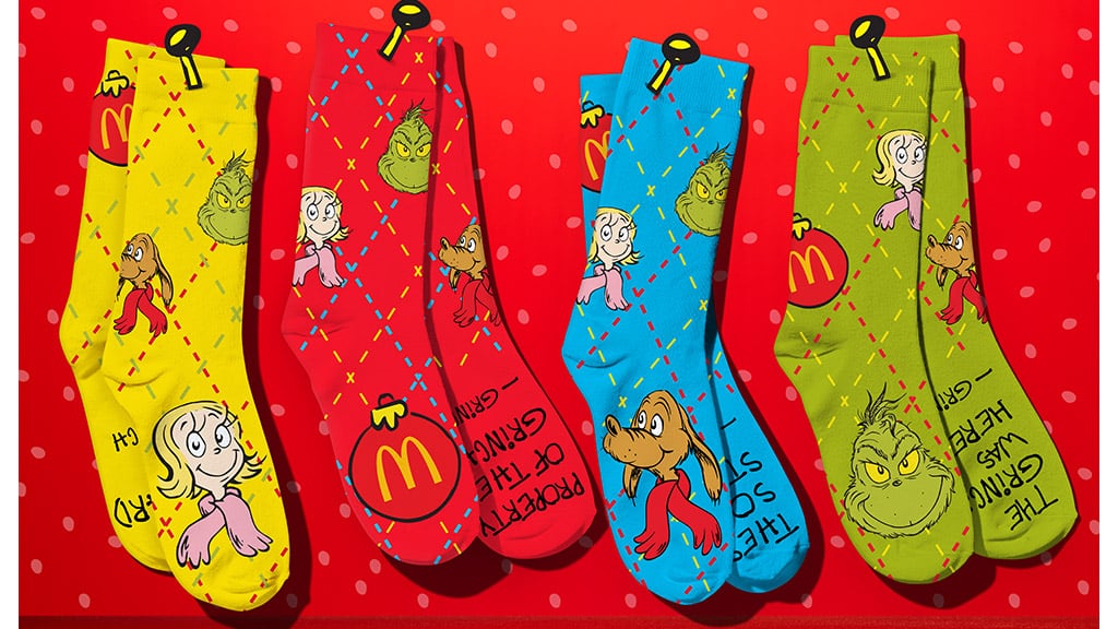 Instead of a figure or toy, the Grinch Meal includes a cozy surprise for fans to enjoy! Each meal features a pair of Seuss-ified socks, scribbled with messages from The Grinch himself. With four festive designs to find, these silly stockings are a total steal.