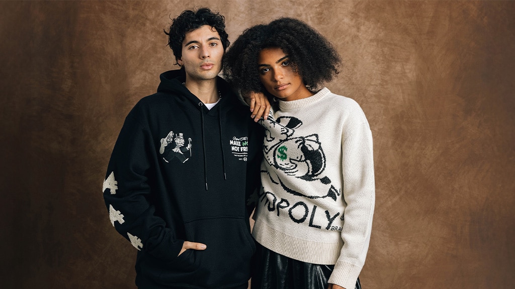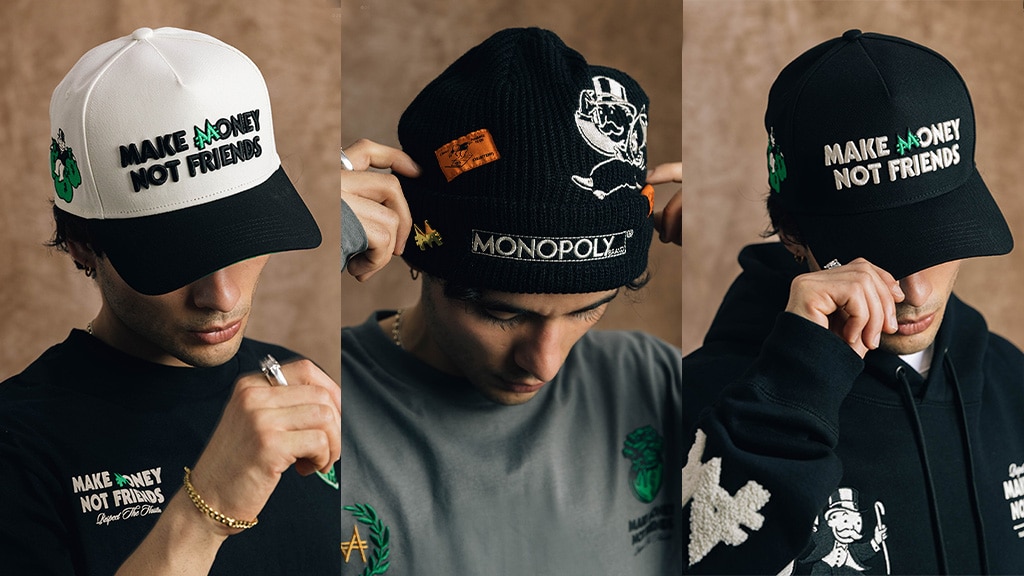 This exclusive collection grows on the existing relationship between Shoe Palace and Hasbro. In this new line, fans can find reimagined tees, hoodies, and accessories that’re better than winning second prize in a beauty contest. Standout pieces include a sun-washed fleece with money symbols, and a jersey with satin trim and embroidered details. Players can also show up to game night with hats and beanies featuring Chance Cards and classic artwork.