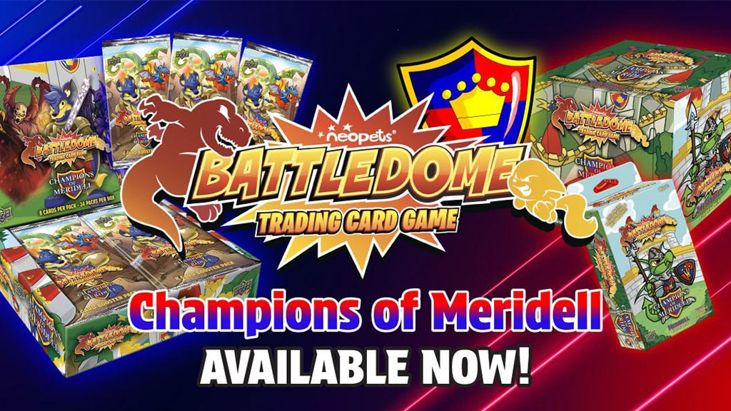 The Champions of Meridell expansion is available now at Neopets Shop, UpperDeck.com, and other gaming stores. Fans can snag individual booster packs for $3.99, starter decks for $24.99, or the collectible Booster Box — containing 24 booster packs — for $89.99.