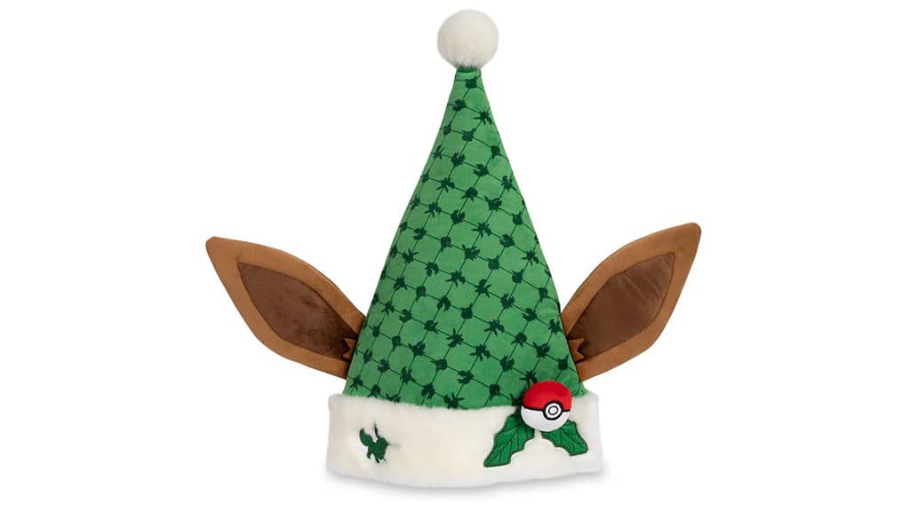 Jingle all the way to the Johto region with this holiday hat! Featuring pine green fabric and plush Eevee ears, this hat is one to catch this Christmas.
