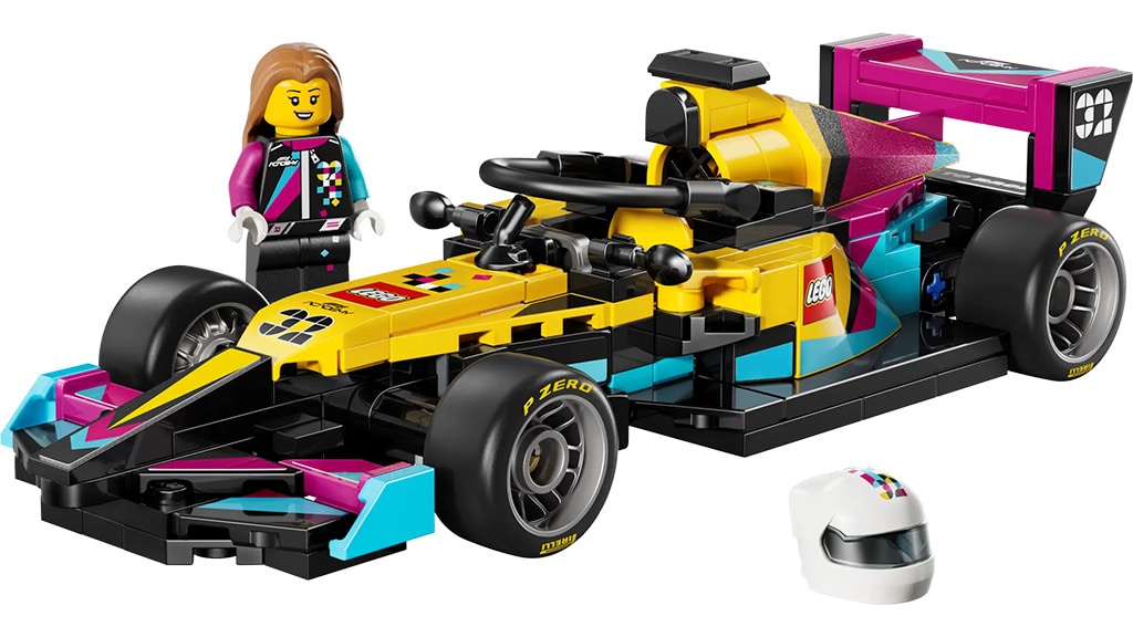 Ready, set, build. Assemble an F1 vehicle complete with a cockpit, a rear wing, a halo, and Pirelli-imprinted tires. The 201-piece set includes a minifigure driver and racing-themed accessories.