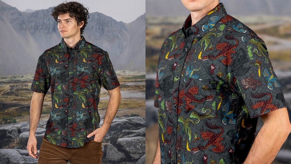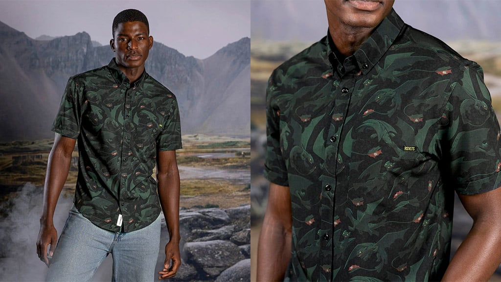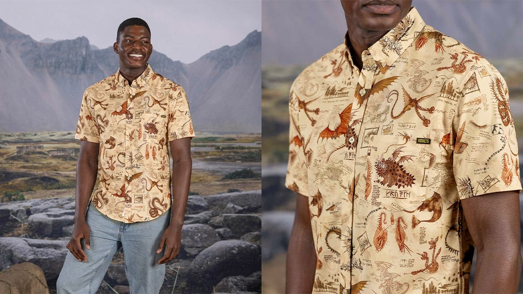 Let your fashion take flight with button-downs, tees, and accessories inspired by the high-flying How to Train Your Dragon saga. Featuring fan-favorite fire-breathers and RSVLTS' signature Kunuflex material, these pieces definitely bring the heat.