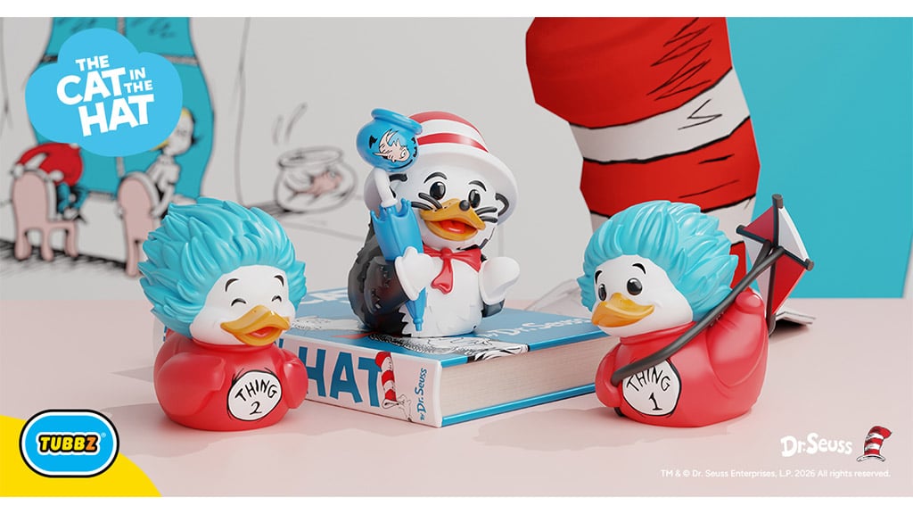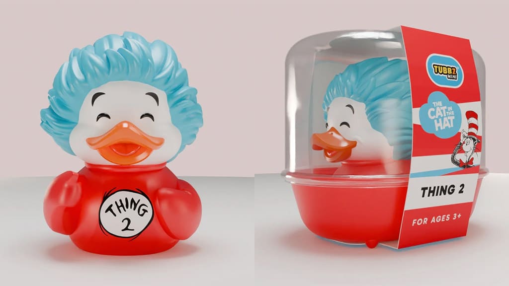 This silly series includes three quackers to collect — The Cat himself and his blue-haired besties, Thing One and Thing Two. You can collect them in window box packaging, in limited-edition bathrub displays, or as two-inch-tall Mini Tubbz.